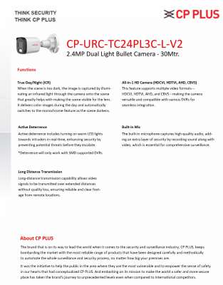Product Type: CP Plus 2.4MP HD Audio Bullet Camera